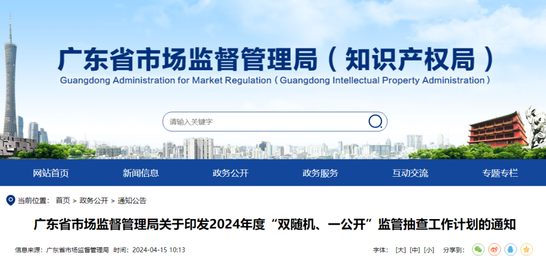 廣東省市場監(jiān)督管理局關(guān)于印發(fā)2024年度“雙隨機(jī)、一公開”監(jiān)管抽查工作計劃的通知